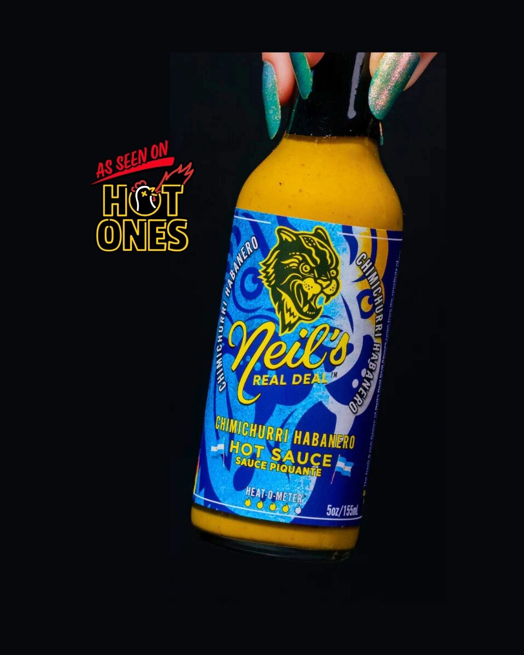 As Seen on HOT ONES Season 28: Inspired by Argentinian chimichurri, this bold hot sauce is packed with herbs, garlic and vinegar, then turned up with habanero and ghost peppers. Medium heat meets savoury, bright flavour, making it a perfect partner for grilled meats and veggies.